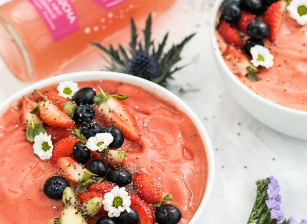 Strawberry & Pomegranate Kombucha Smoothie Bowl