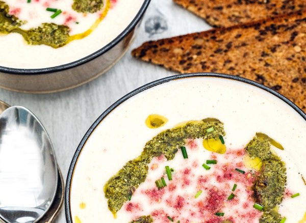 Pink Radish & Cucumber Gazpacho with Protein Toast