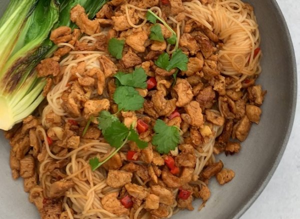 - Add the mince to the pan along with the juice of the lime, and a generous drizzle of olive oil. Stir until everything is mixed together completely, then add the cooked rice, mint and coriander leaves, and chilli. Stir and add the soy sauce, then remove the larb from the heat.